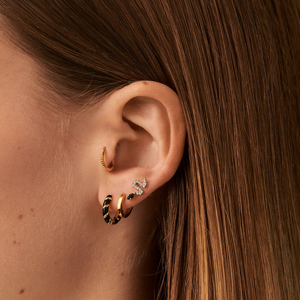 Si amas la originalidad, ¿por qué no optar por una combinación de varios piercings? La acumulación de piercings de oreja, como los piercings hélix y tragus, te permite crear un look personalizado y tendencia. Jugando con diferentes medidas y estilos de joya, puedes dar a tus orejas un efecto de superposición armonioso, ¡perfecto para afirmar tu estilo más atrevido!