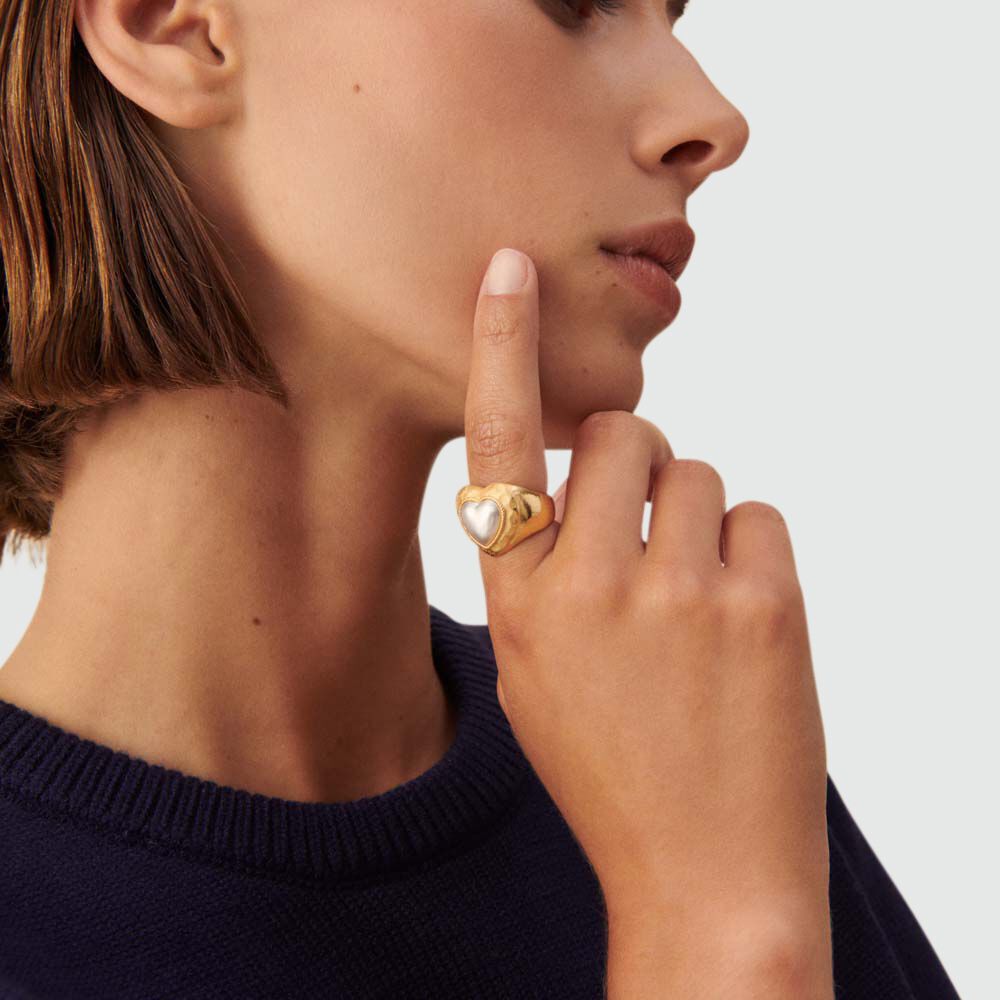Anillo ancho N-13 - Perla / Oro - Anillos de fantasía  | Agatha