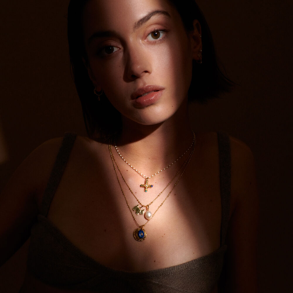 Colgante CRUZ ICÓNICA - Multicolor / Oro - Sin piedra  | Agatha