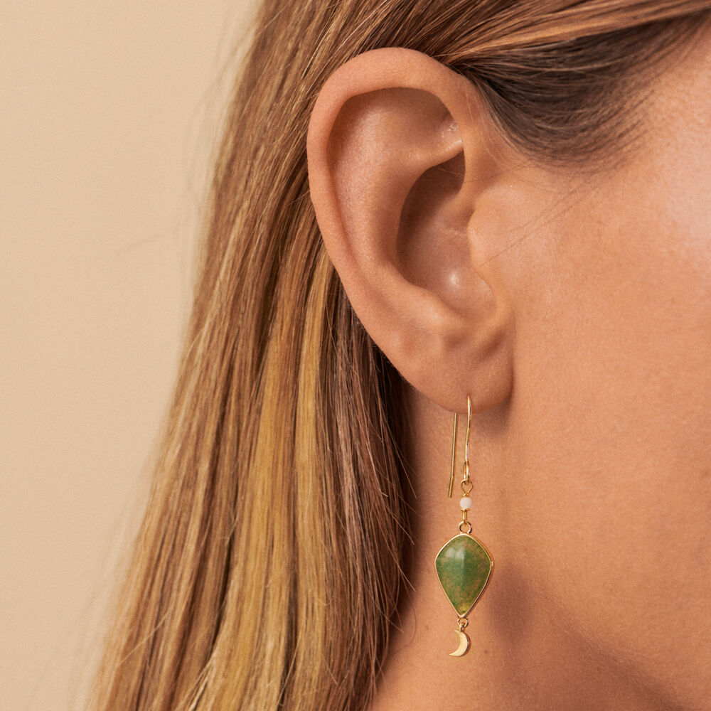 Pendientes largos MOON - Aventurine - Pendientes de fantasía  | Agatha