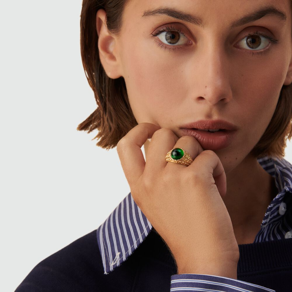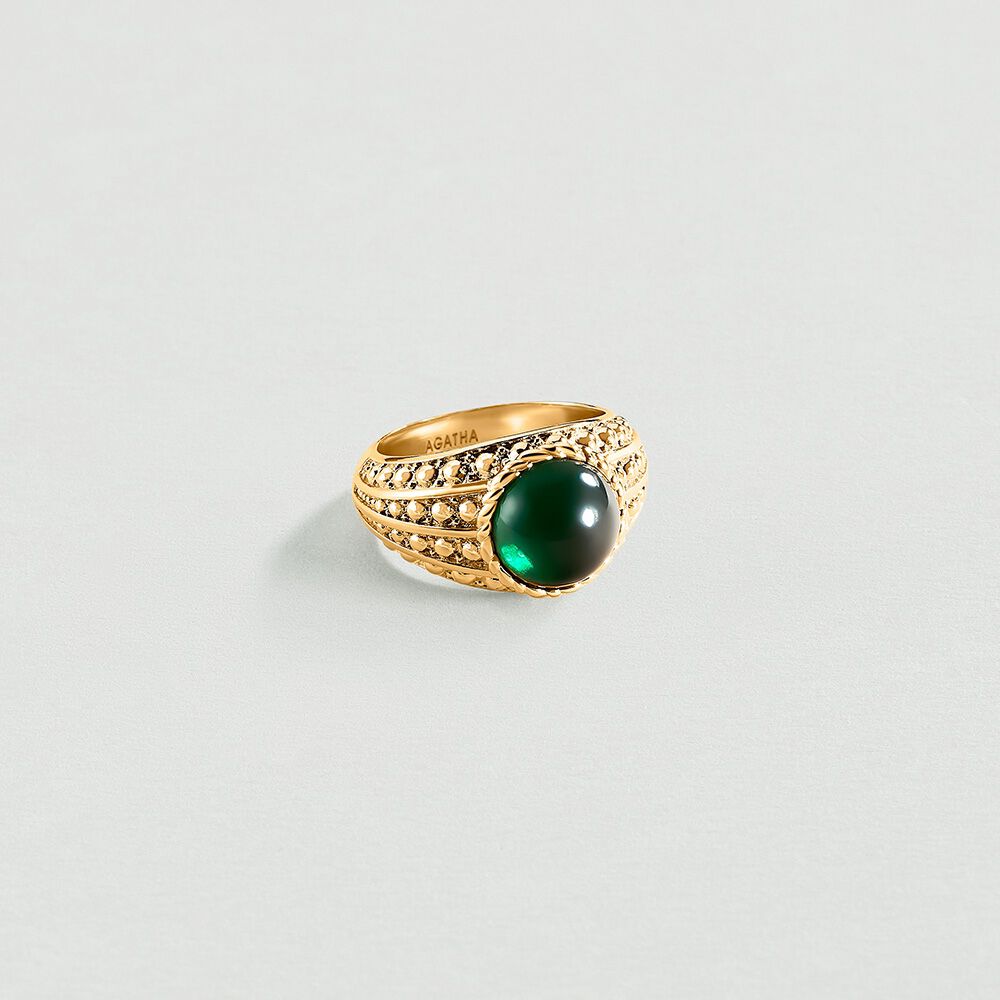 Anillo ancho N-13 - Verde / Dorado - Anillos de fantasía  | Agatha