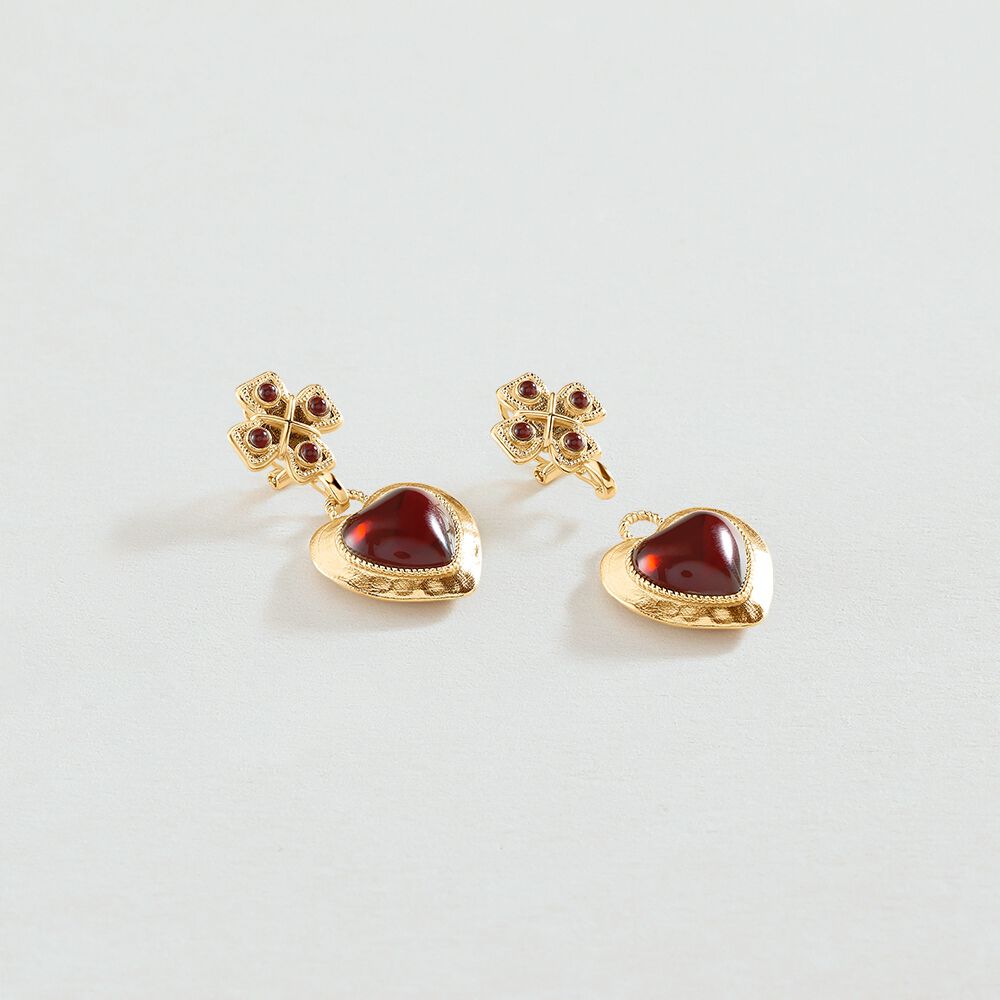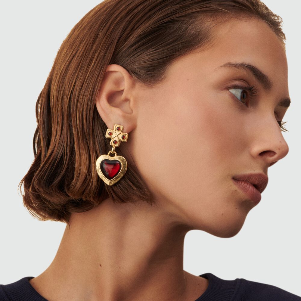 Pendientes largos N-13 - Rojo / Oro - Pendientes de fantasía  | Agatha