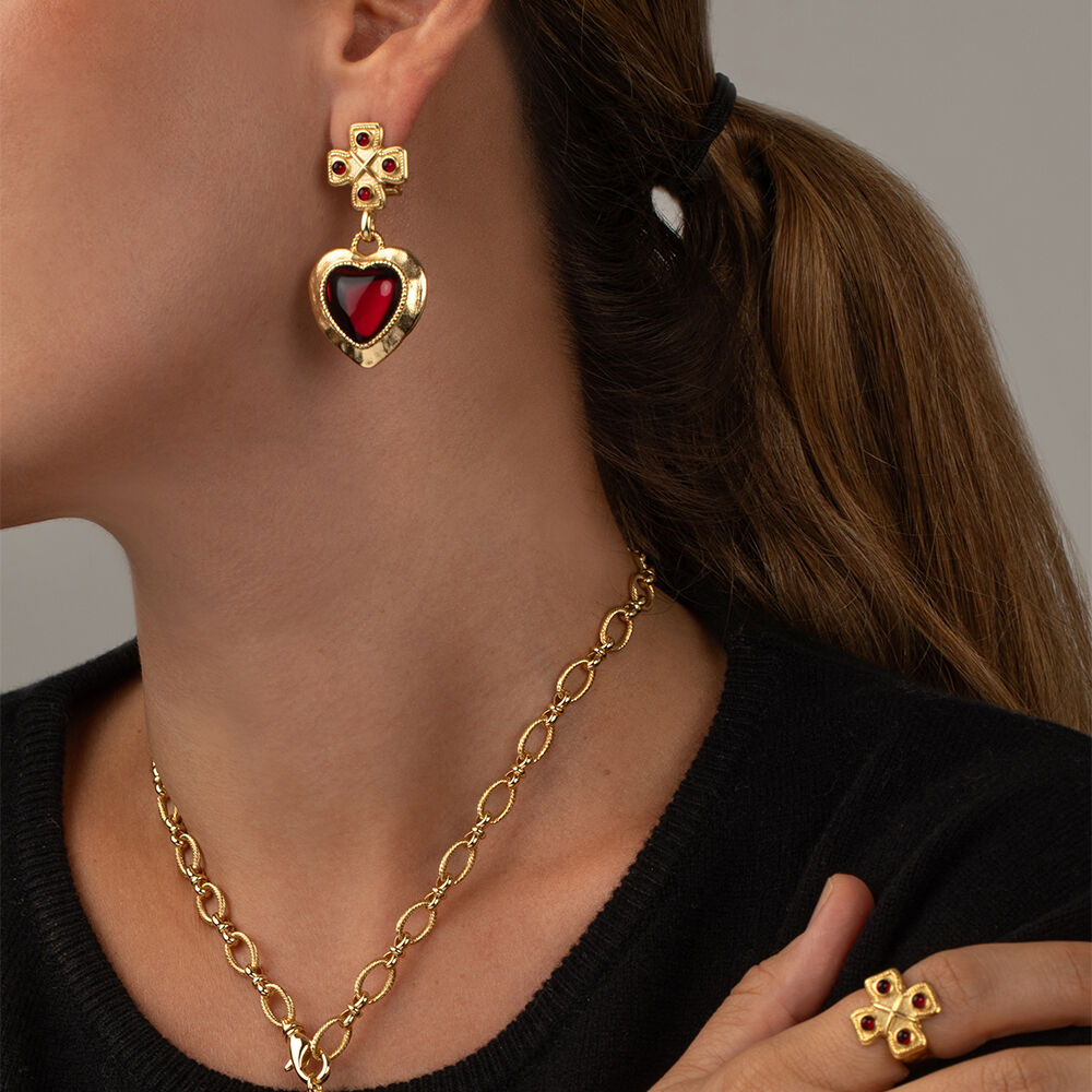Pendientes largos N-13 Rojo / Oro