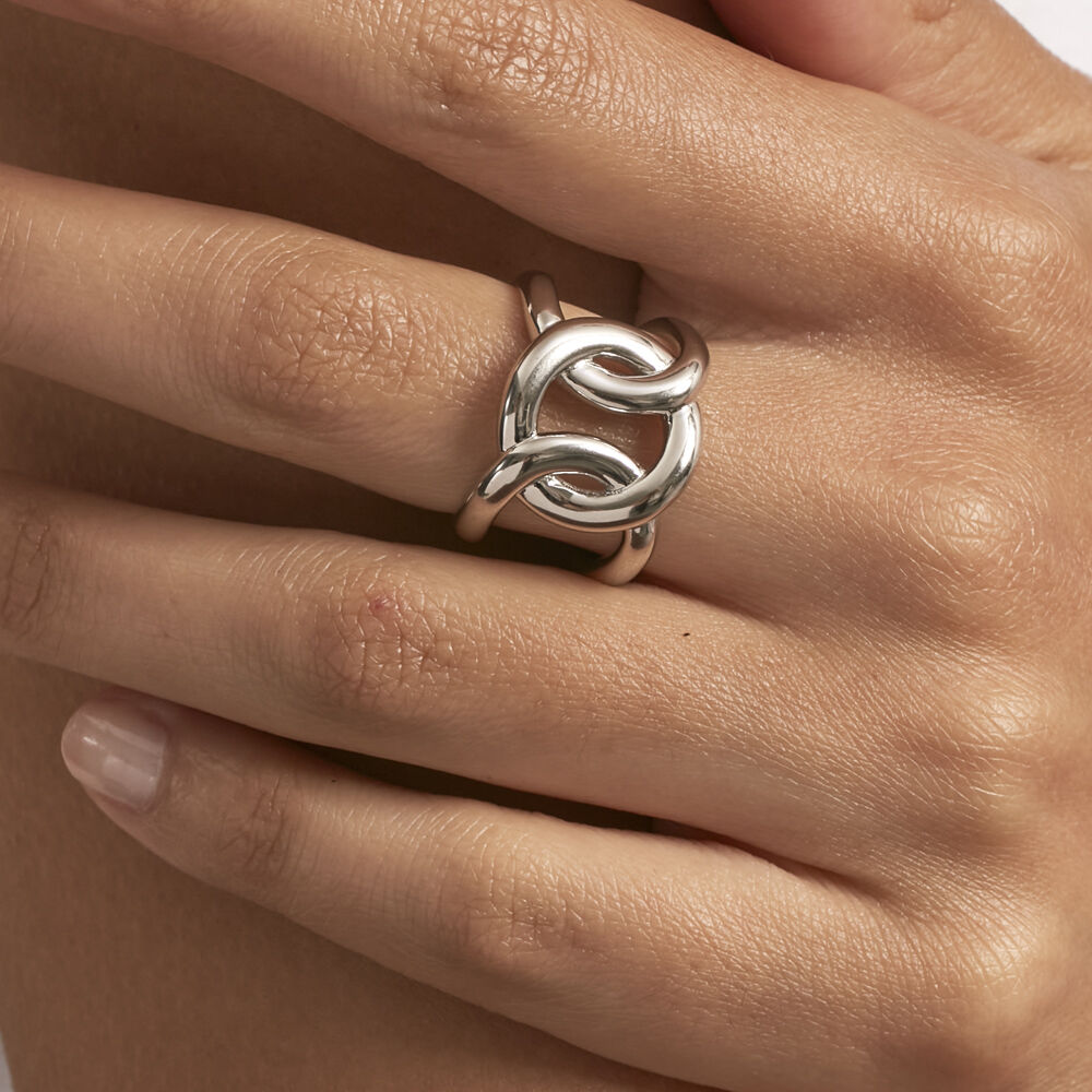 Anillo con eslabones entrelazados en plata de ley.