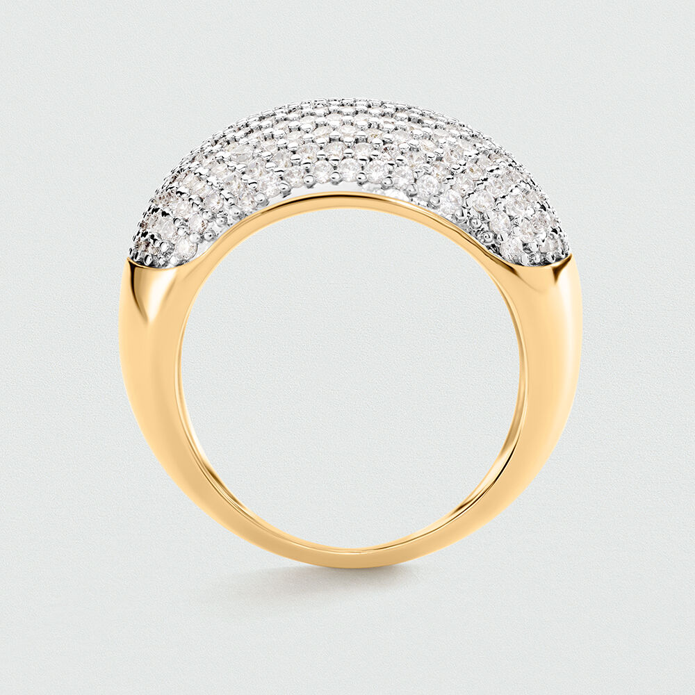 Anillo ancho acabado en oro lleno de circonitas incrustadas. Un joyón que atrapará todas las miradas. Es perfecto para regalar o darte ese capricho que llevas tiempo queriéndote dar.
