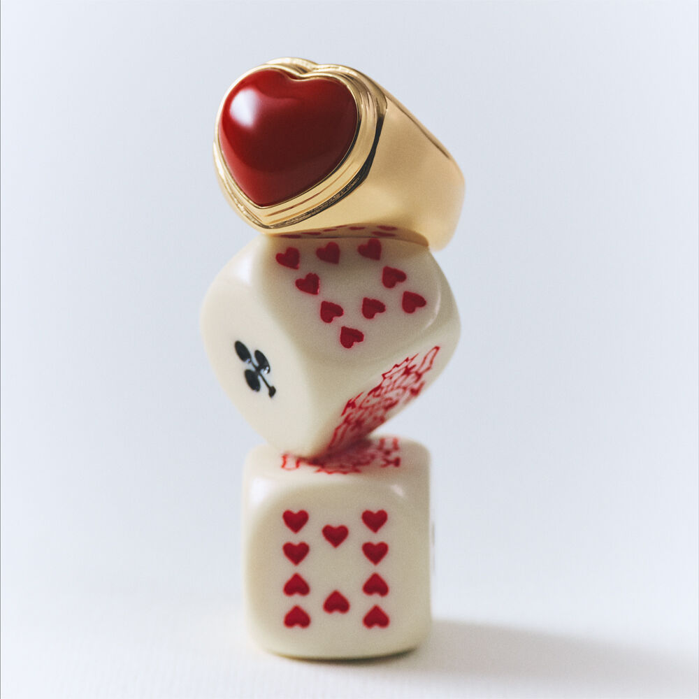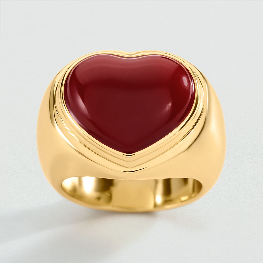 Anillo ancho acabado en oro con corazón de resina rojo XL. Los anillos son nuestros favoritos de esta colección y van a volar. ¡No te quedes sin ellos!