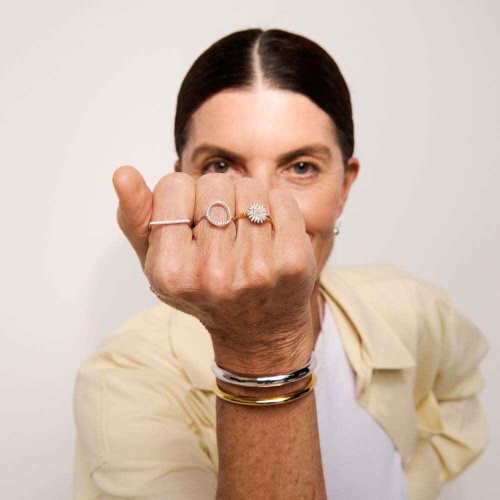 Anillo fino acabado en oro con margarita de strass. Una opción súper primaveral que querrás lucir a todas horas.