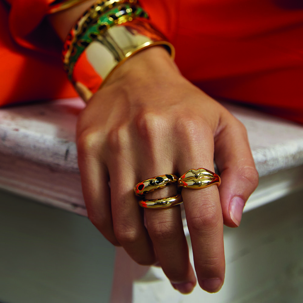 Anillo bañado en oro de 18k con forma de labios. Un anillo fácil de llevar y de combinar con el motivo tendencia de la temporada. Llévalo con cualquier look, te dará el toque diferente que llevabas tanto tiempo buscando.
