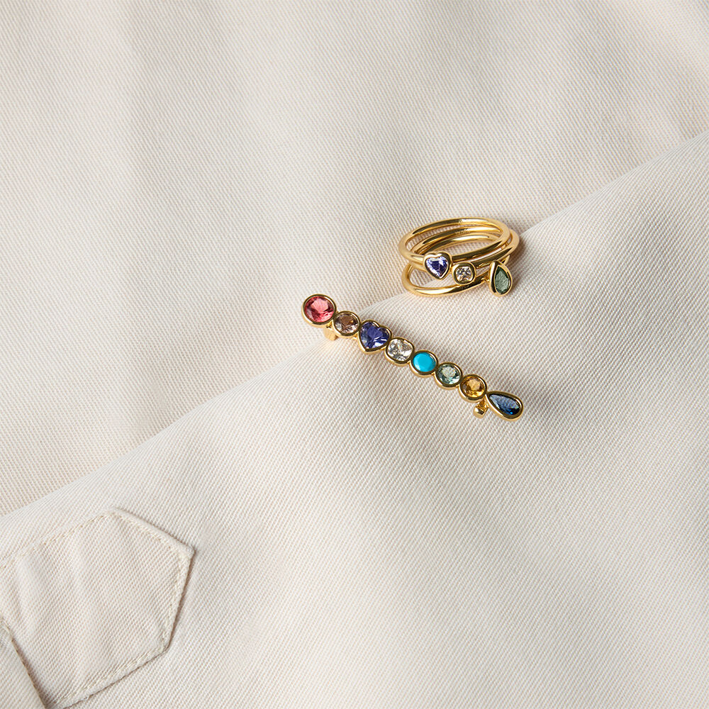 Broche acabado en oro con circonitas de diferentes formas y colores. Es el toque definitivo para dar carácter y originalidad a todos tus looks.