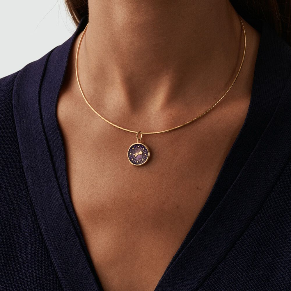Un amuleto que hace de guía y orienta. No pierdas el rumbo con esta estrella fugaz de la suerte. Es un símbolo de suerte y protección. Además, puedes llevarlo por los dos lados: el primero, aportará un toque de luz de color azul irresistible, el segundo, con un mensaje poderoso que no podrás dejar de mirar. Crea tu collar personalizado con los amuletos de moda de la nueva colección de Maria Pombo X AGATHA. Joya acabada en oro..