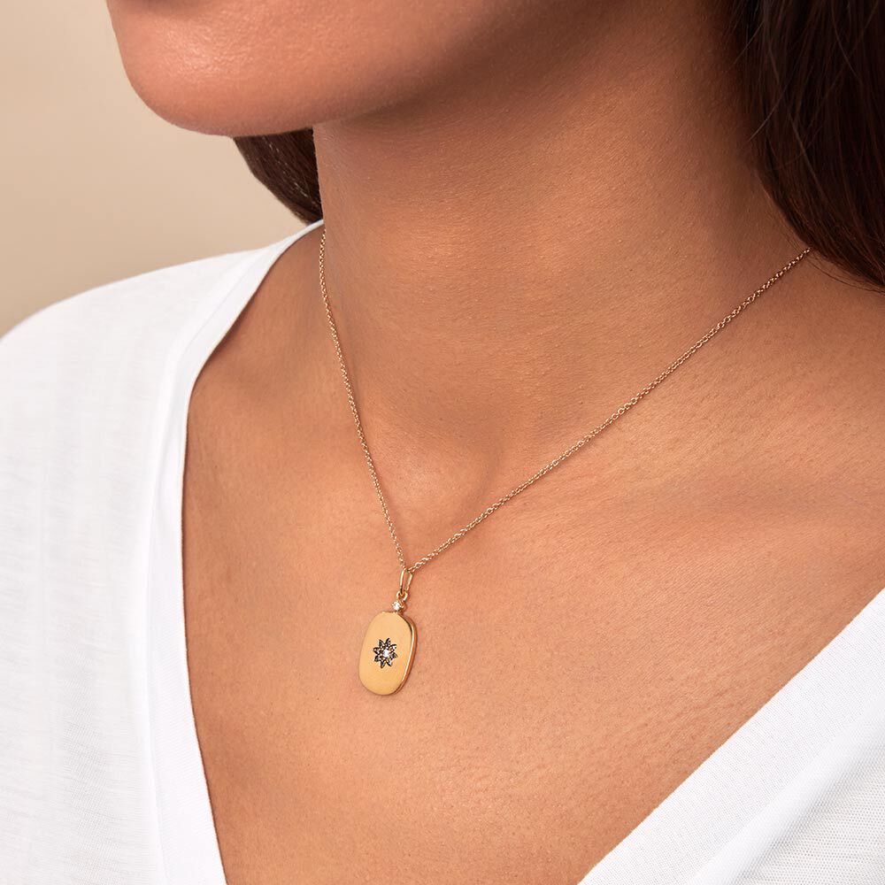 Colgante medalla rectangular flor pavée.