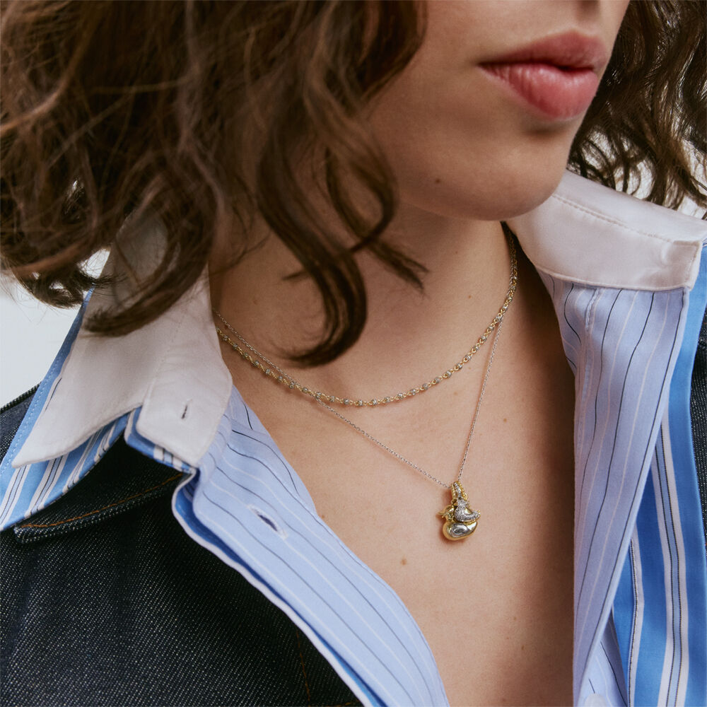 Un amuleto que representa la gran aventura de la vida que es tener hijos. Los patitos siempre están cerca del calor y la protección de su mamá pata. Acumula tantos patitos como quieras y luce a tu tribu con orgullo. Esta vez revisitamos este best seller añadiéndole circonitas y creando una nueva necesidad. Crea tu collar personalizado con los amuletos de moda de la colección Lucky de Maria Pombo X AGATHA.