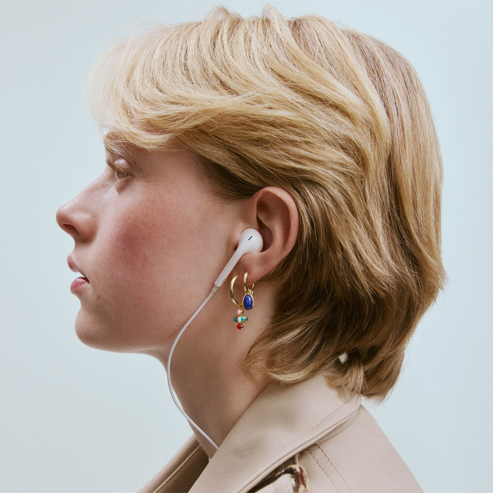 Colgante acabado en oro con forma de cruz y piedras naturales. Es perfecta para dar un toque de color a tus outfits. Talismans es un concepto para crear las joyas que más te representen y se adapten a tu look. Elige tu base, añade tus colgantes favoritos y a disfrutar.