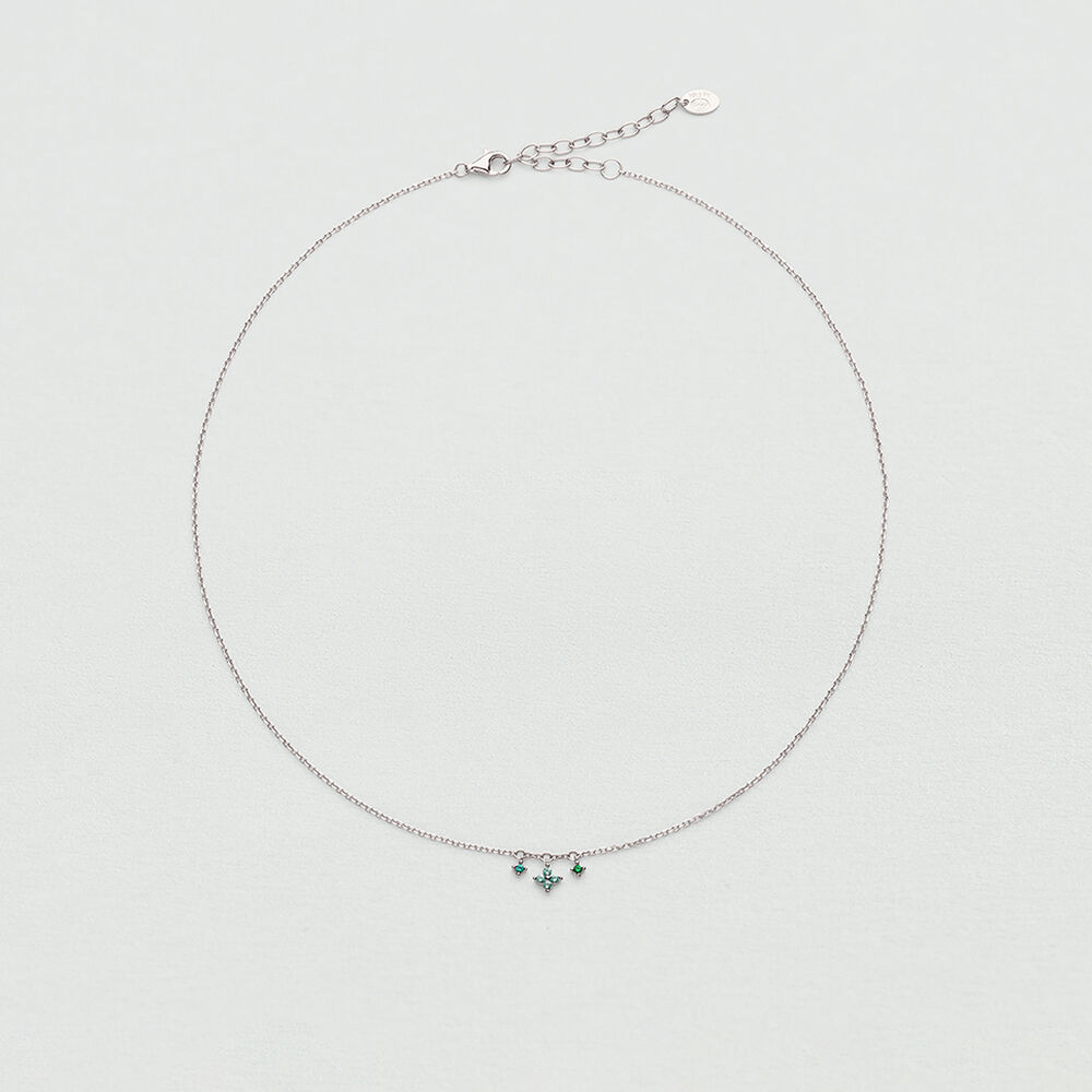 Collar corto de plata de ley con 3 motivos en circonitas de varios tonos. Una joya perfecta para el día a día, favorecedora y cómoda, que vestirá todos tus looks. Es también el regalo perfecto, acertarás seguro.