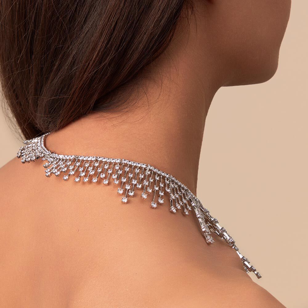 Collar babero cadenas de strass de la colección Agatha By Sara Carbonero.