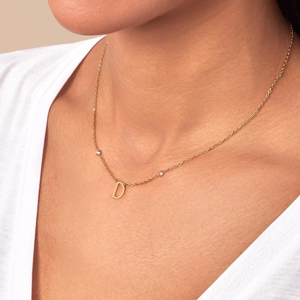 Collar de acero letra D con 2 circonitas.
