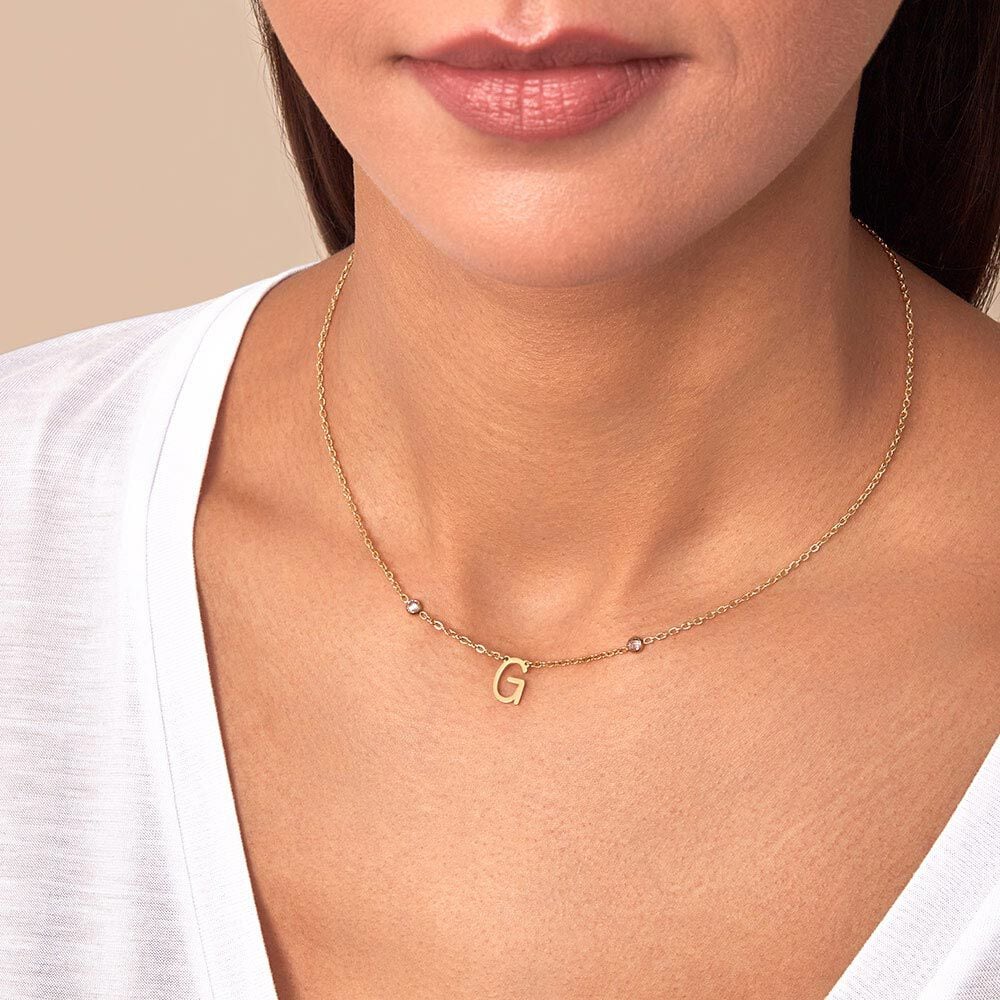 Collar de acero letra G con 2 circonitas.