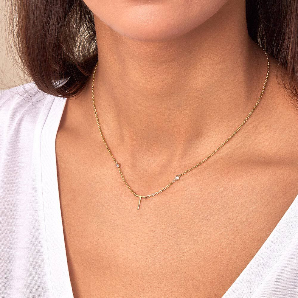 Collar de acero letra T con 2 circonitas.