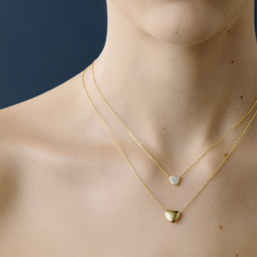 Collar corto de plata de ley con baño de oro y colgante en forma de corazón orgánico. Una apuesta romántica y tendencia que no te querrás quitar. Esta joya mide 400 mm con un alargo extra de 50 mm