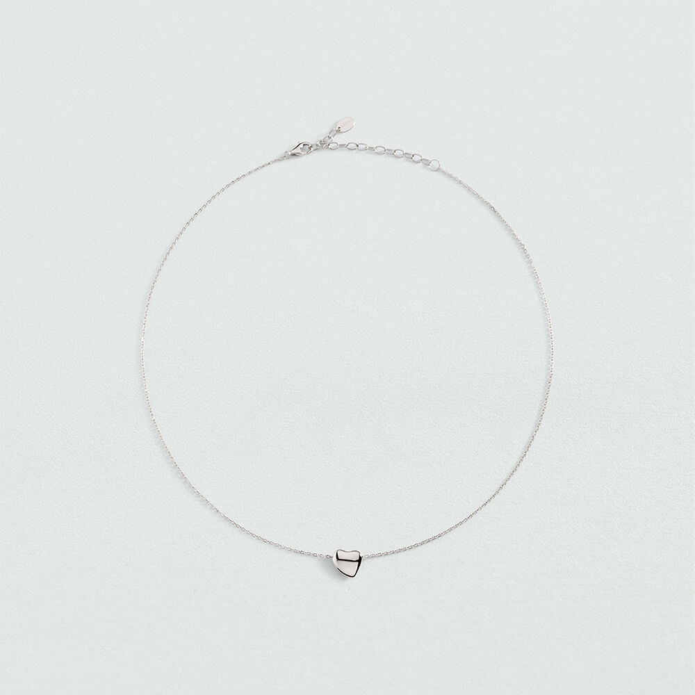 Collar corto de plata de ley con colgante en forma de corazón orgánico. Una apuesta romántica y tendencia que no te querrás quitar. Esta joya mide 400 mm con un alargo extra de 50 mm