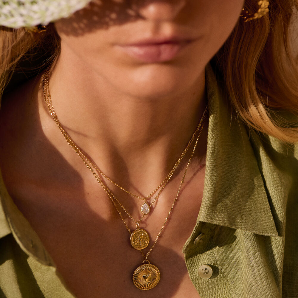 Collar corto acabado en oro de 18k y mini colgante de circonitas. Una joya de siempre revisitada para aportar un toque moderno y actual. Ideal para lucir en tu día a día y para que te acompañe en tus ocasiones más especiales. Este collar es también un firme candidato a ser el regalo perfecto, ¿Te vas a resistir?.