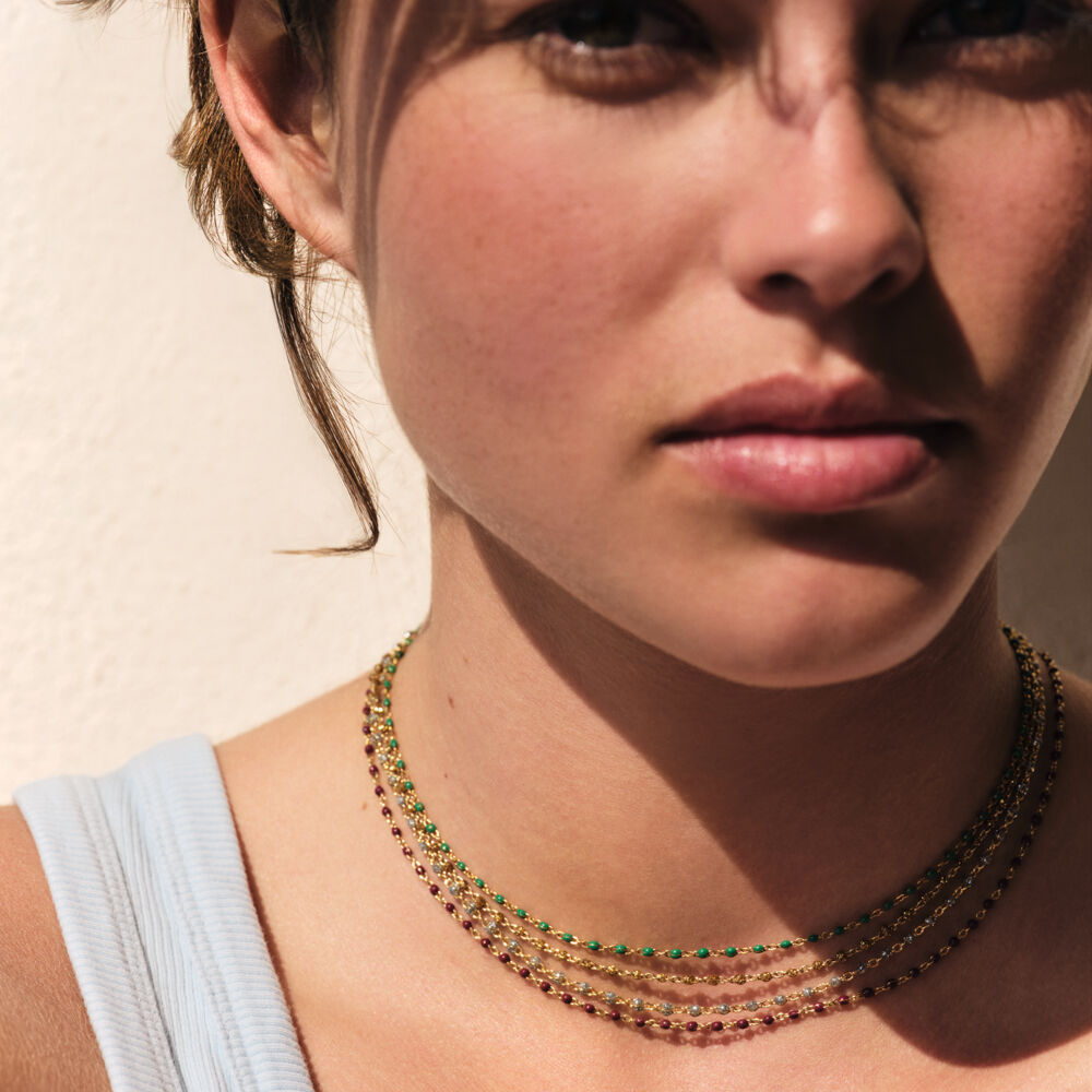 Collar corto de acero inoxidable y bolitas de esmalte. Estos collares son ideales para el día a día. Combínalos entre sí a varias alturas para un total look súper original y favorecedor. Esta joya mide 375mm y tiene un alargo de 50mm
