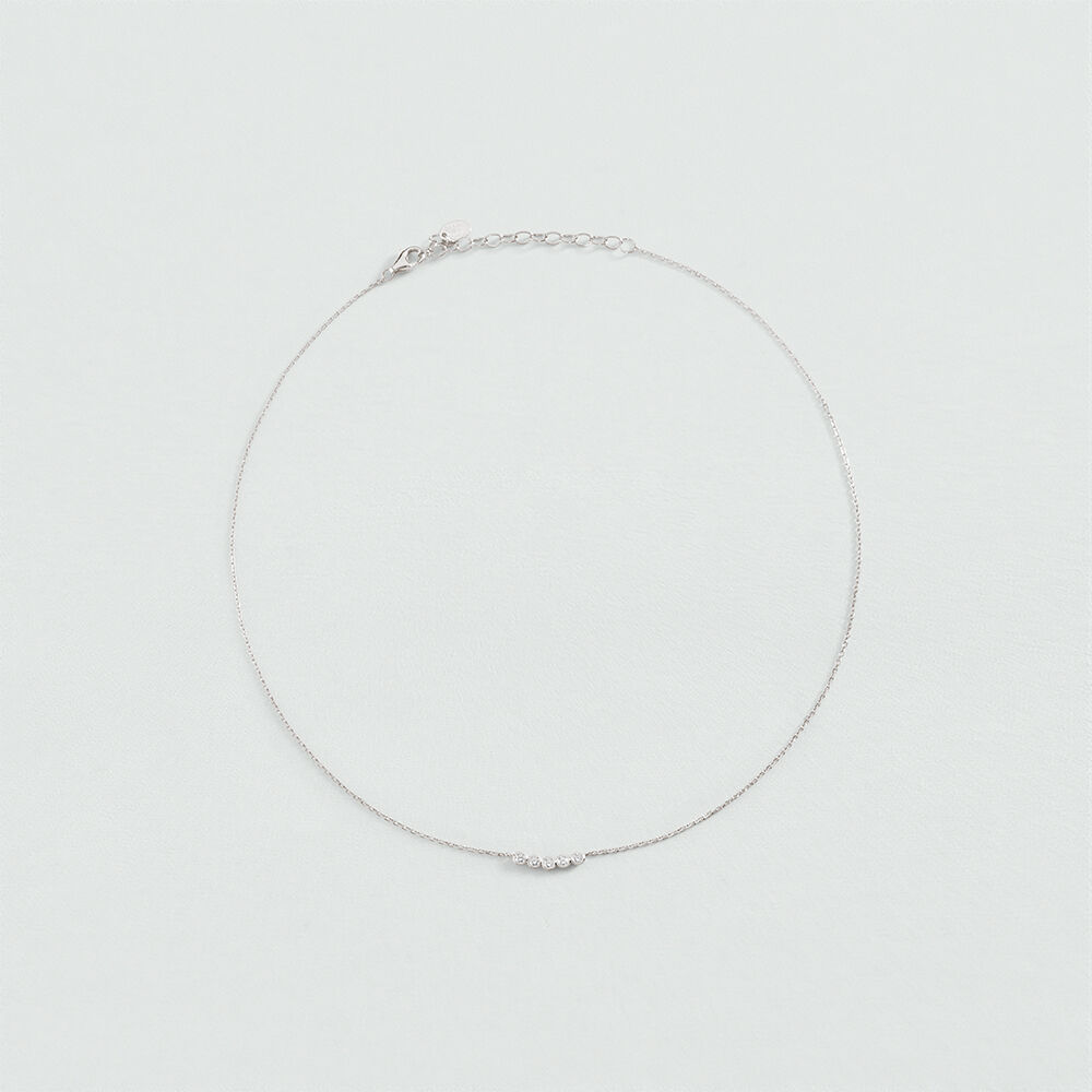 Collar corto de plata de ley con tira de circonitas redondas en color cristal. Un verdadero fondo de joyero que te ayudará a verte de lo más favorecida todas las mañanas, aporta un montón de luz. Esta joya mide 375 mm con un alargo extra de 50 mm