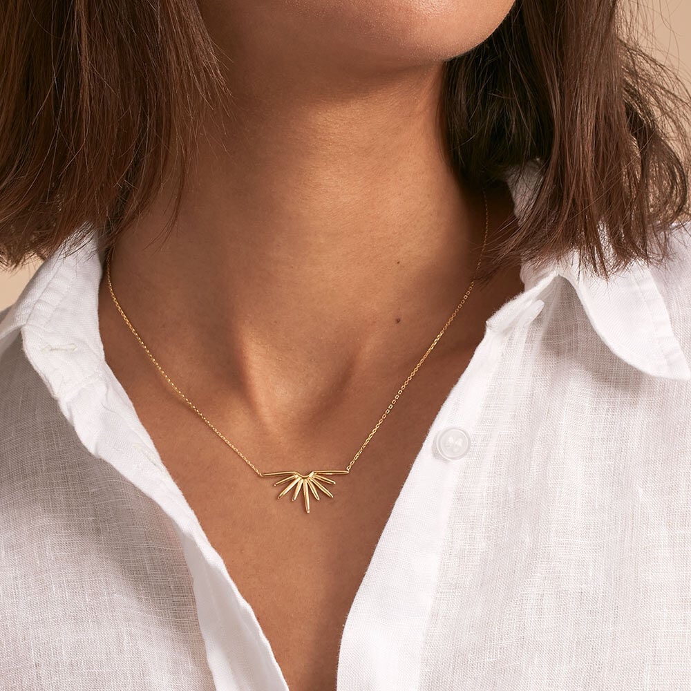 Collar largo de plata de ley y baño de 1 micra de oro de 18k con pampillas en forma de grano de arroz degradadas. Este diseño no dejará indiferente a nadie y te hará sentir vestida en todo momento..