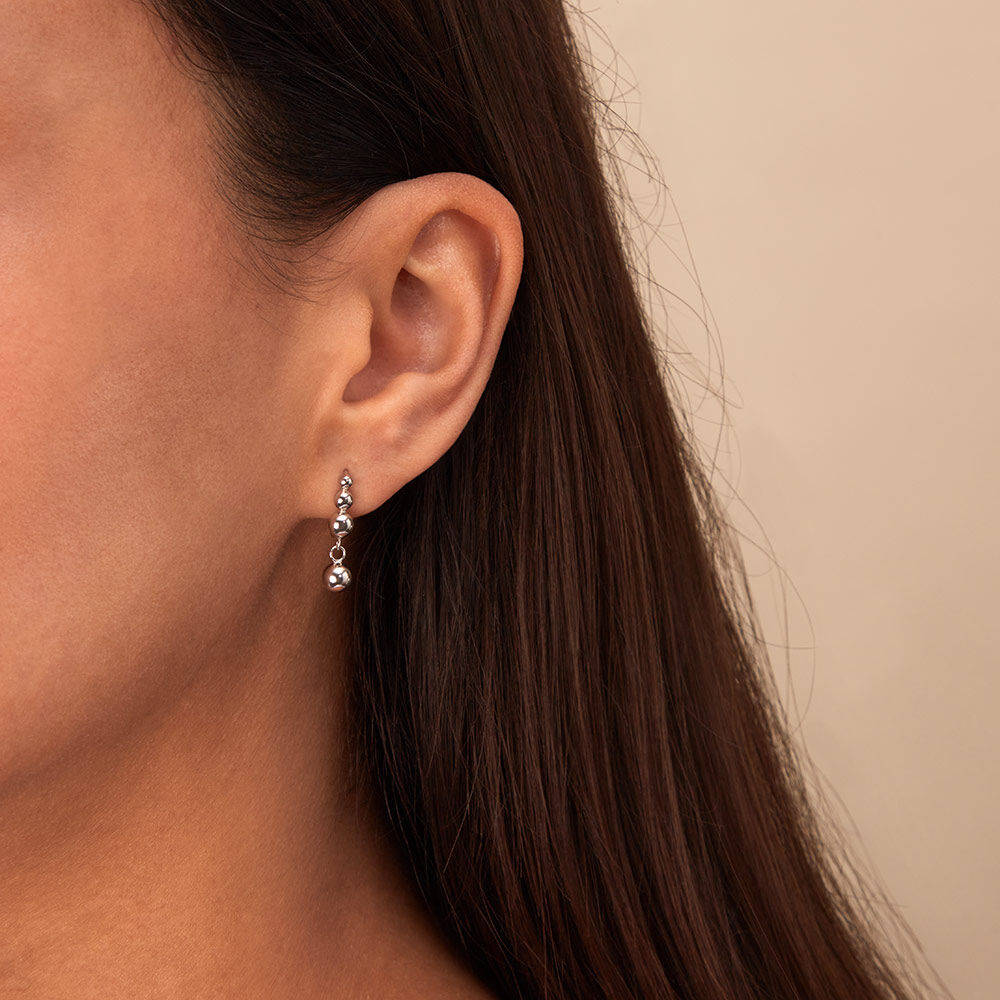 Criolla de plata de primera ley con detalle de 4 bolas en degradé. Pendientes de aro estilo dormilonas. Aporta movimiento a tu conjunto.