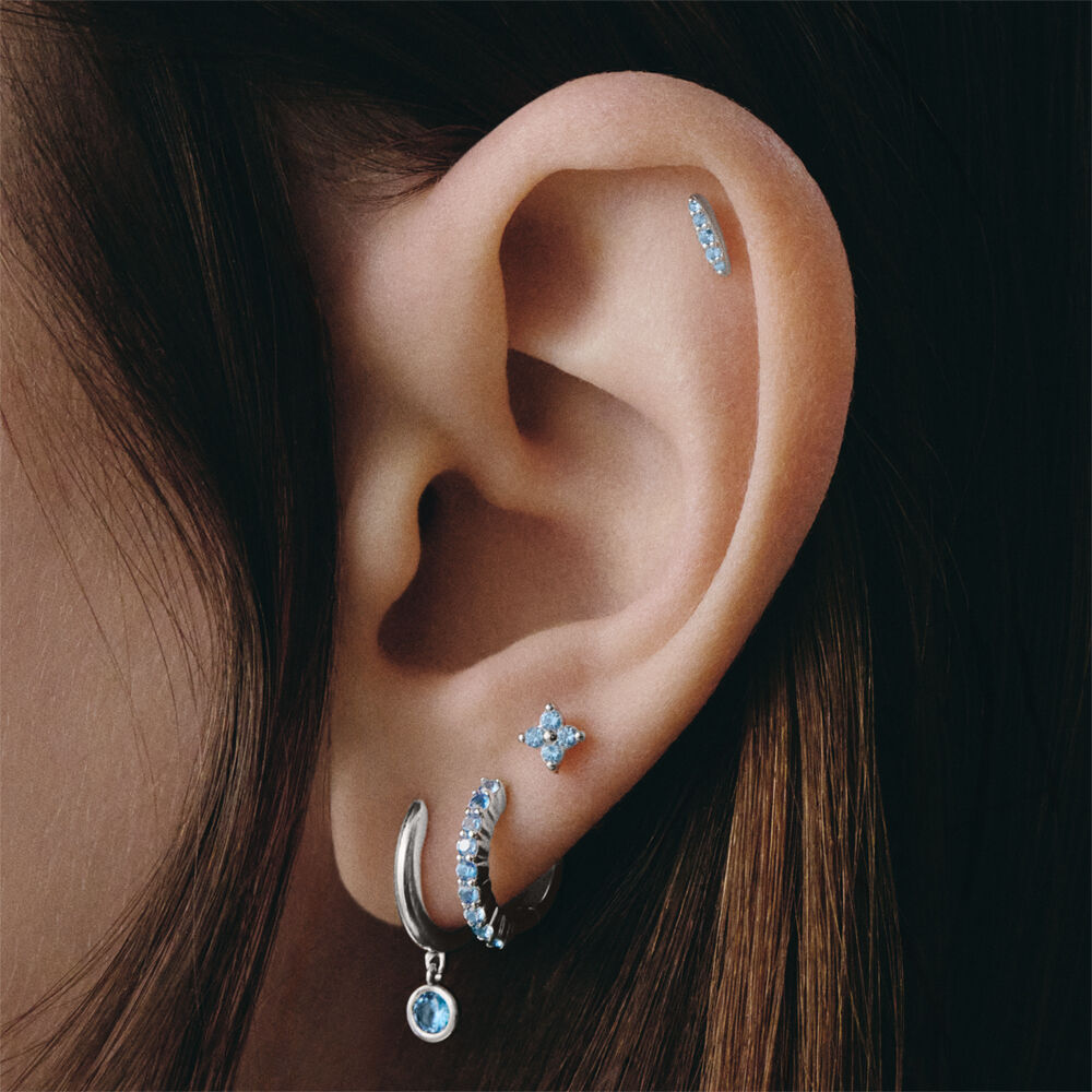Piercing criolla de plata de ley con circonita redonda de color azul. Prueba a combinarla con alguna otra propuesta sin color para un total look perfecto. Nuestros Mix & Match se venden a la unidad.