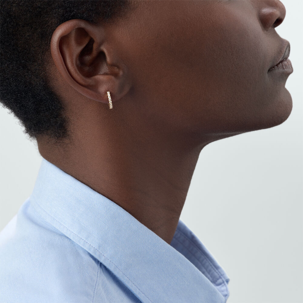 Piercing criolla de plata de ley y baño de oro con circonitas en color cristal. Una apuesta segura que no te querrás quitar. Nuestros Mix & Match se venden a la unidad.