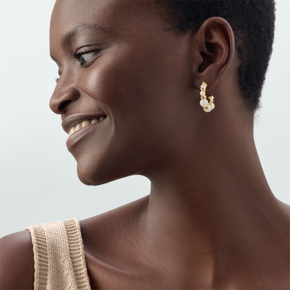 Criollas acabadas en oro y con piedras naturales: tú decides si las quieres en color rojo, azul o beige. Una joya súper favorecedora que podrás lucir toda la temporada.