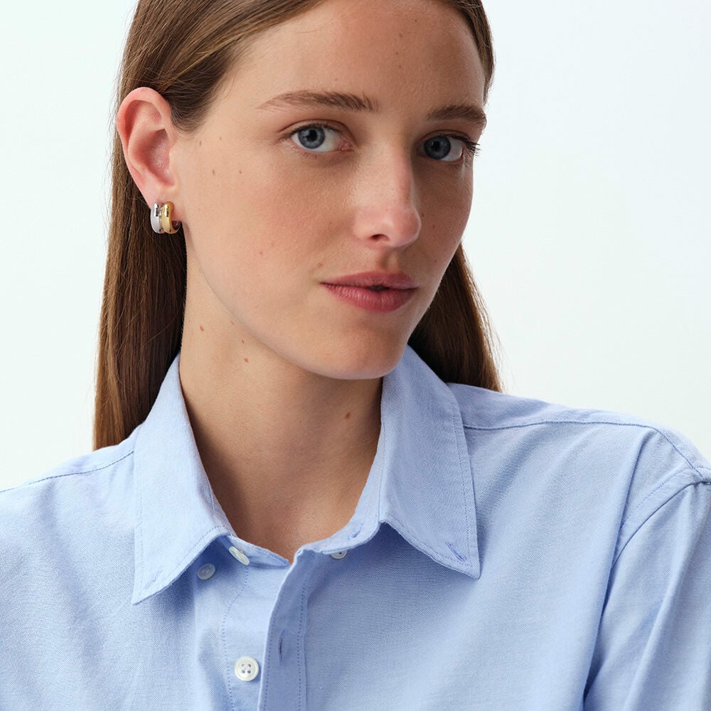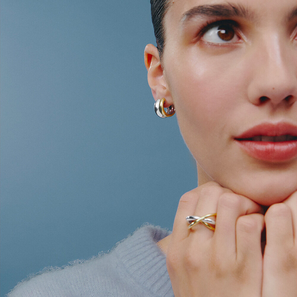 Pendiente bicolor doble de plata de ley con baño de oro y rodio. Favorecedoras y con un diseño de alta joyería. Son el regalo perfecto.