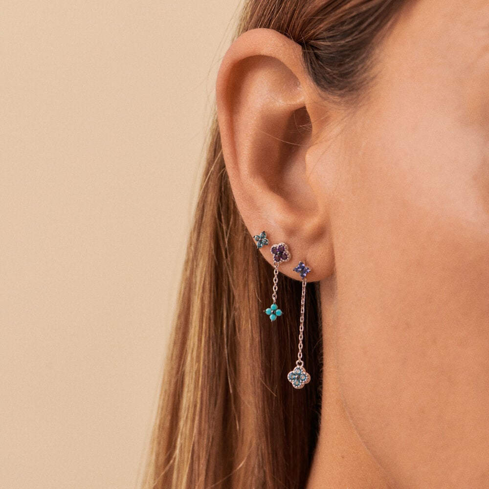 Trío de piercings a 3 alturas de plata de ley y circonitas, tú decides si en color cristal para una opción más neutra o en multicolor para un twist definitivo. Poco más vas a necesitar para lucir la decoración de oreja más tendencia. Nuestros Mix & Match se venden a la unidad.