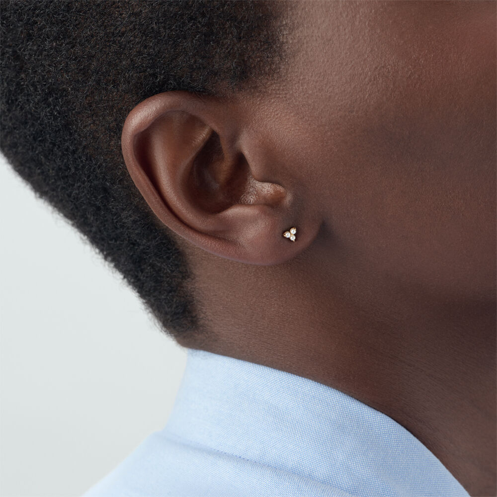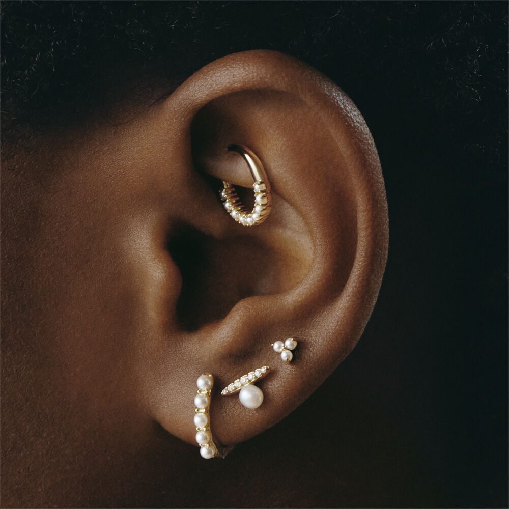 Piercing de plata de ley y baño de oro con trío de perlas. Las perlas están de moda y este diseño aportará un toque muy rock y muy romántico a la vez a tus looks. Nuestros Mix & Match se venden a la unidad.