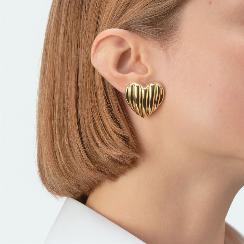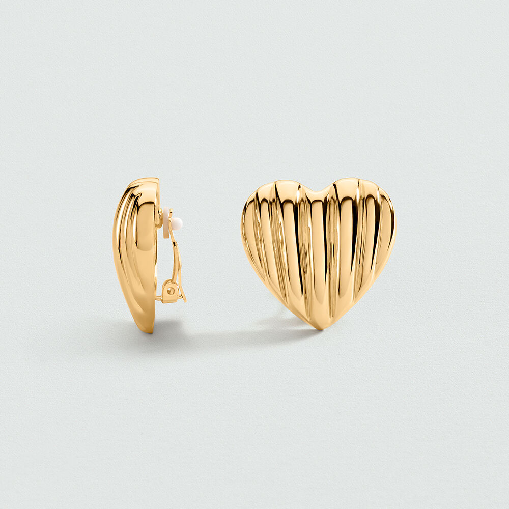 Pendientes grandes de clip acabados en oro con forma de corazón texturizado. Favorecedores a más no poder, elevarán todos tus looks y atraparás todas las miradas.