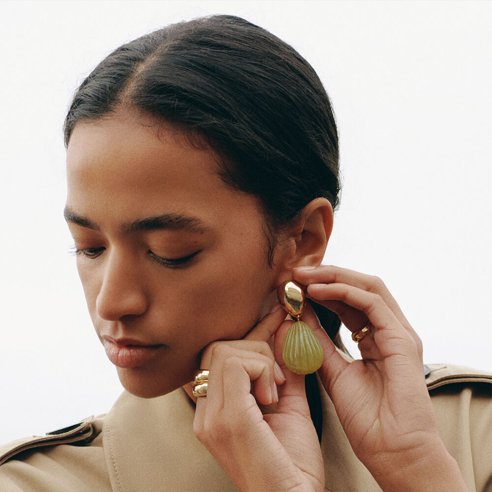 Pendientes largos ideales para todos tus eventos de esta primavera. La parte superior está acabada en oro y, la inferior, es una concha de resina en color marfil o kaki... ¡Un must que no puede faltar en tu joyero! No pesan nada, no te enterarás de que los llevas y atraparás todas las miradas