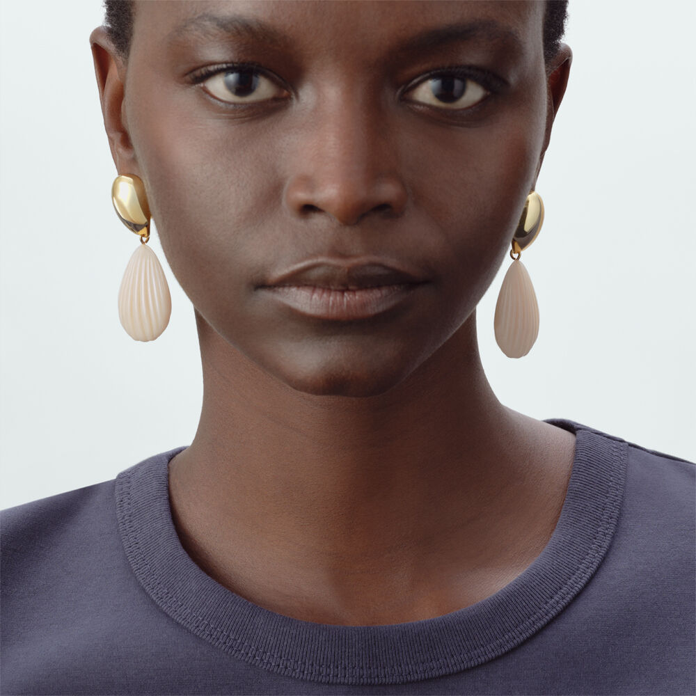 Pendientes largos ideales para todos tus eventos de esta primavera. La parte superior está acabada en oro y, la inferior, es una concha de resina en color marfil o kaki... ¡Un must que no puede faltar en tu joyero! No pesan nada, no te enterarás de que los llevas y atraparás todas las miradas