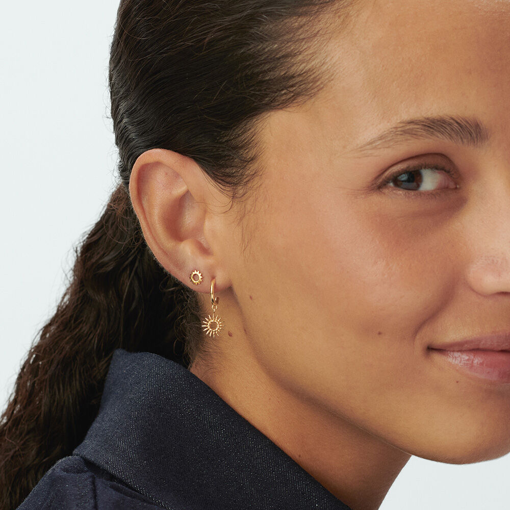 Mini criolla de plata de ley con baño de una micra de oro de 18k y colgante sol. Una propuesta ideal para lucir toda la temporada y combinar con tus piercings más coloridos. Te quedará ideal. Nuestros Mix & Match se venden a la unidad.