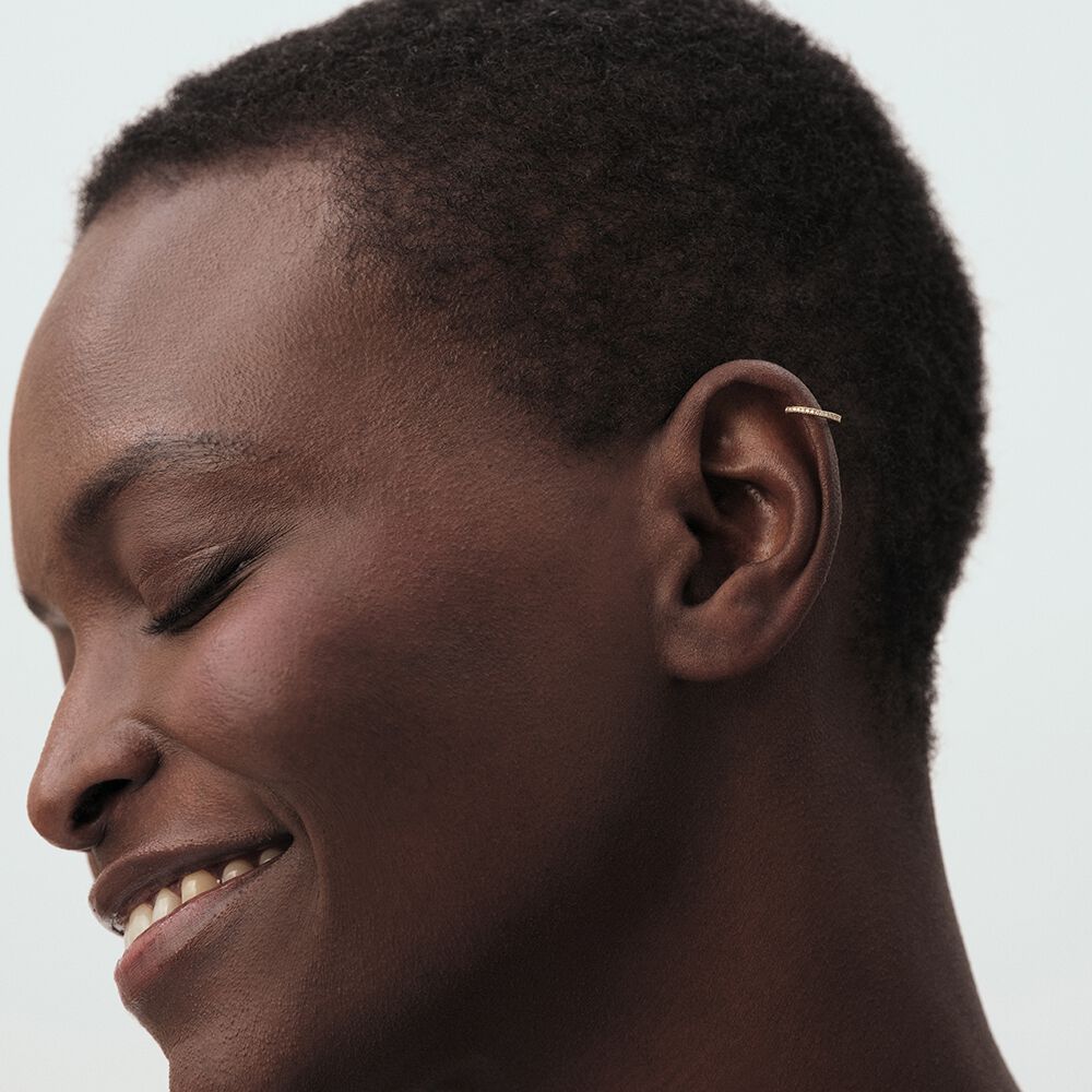 Mini criolla de plata de ley con circonitas y baño de oro para el tragus. Favorecedor y combinable, este diseño es una apuesta segura.