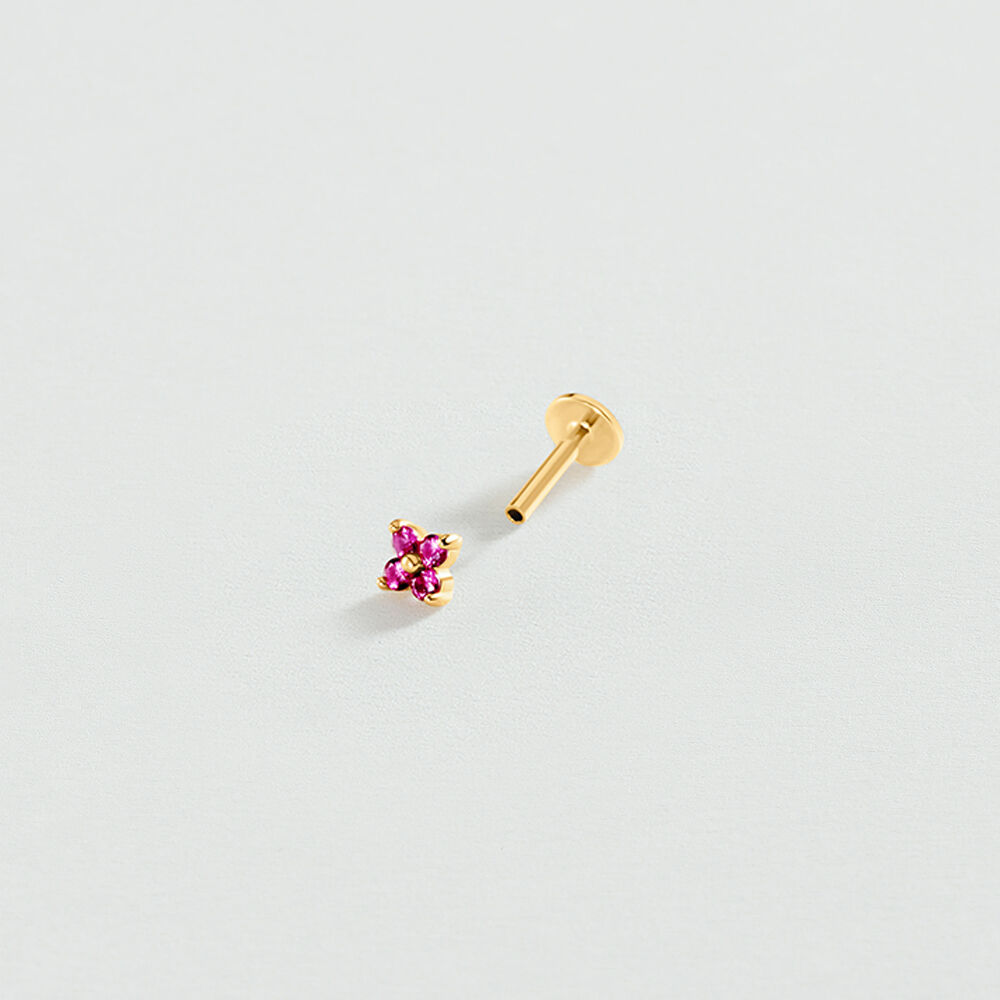 Piercing de plata de ley y baño de oro en forma de flor con circonitas verdes o rosas, tú decides. Ideal para aportar color a tus días. Nuestros Mix & Match se venden a la unidad.