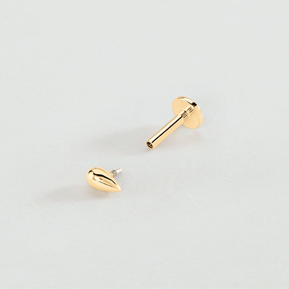 Piercing en forma de gota. Es de plata de ley bañada en oro y se vende a la unidad. El cierre es de rosca y está hecho en acero para garantizar su durabilidad..