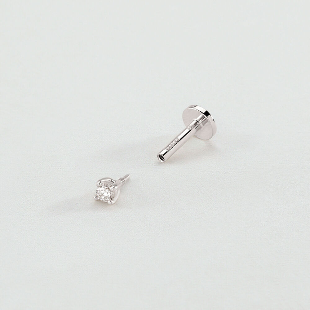 Piercing en forma de circonita de 2mm. Es de plata de ley bañada en rodio y se vende a la unidad. El cierre es de rosca y está hecho en acero para garantizar su durabilidad.