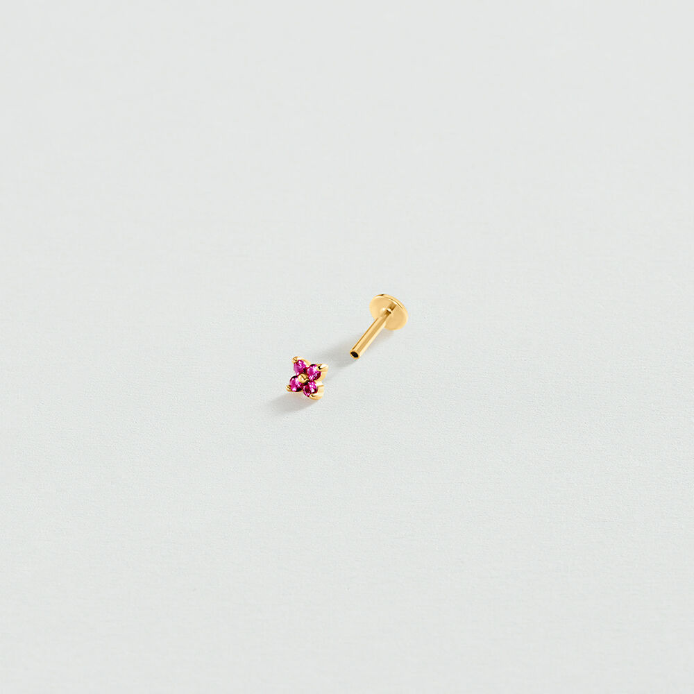 Piercing de plata de ley y baño de oro en forma de flor con circonitas verdes o rosas, tú decides. Ideal para aportar color a tus días. Nuestros Mix & Match se venden a la unidad.