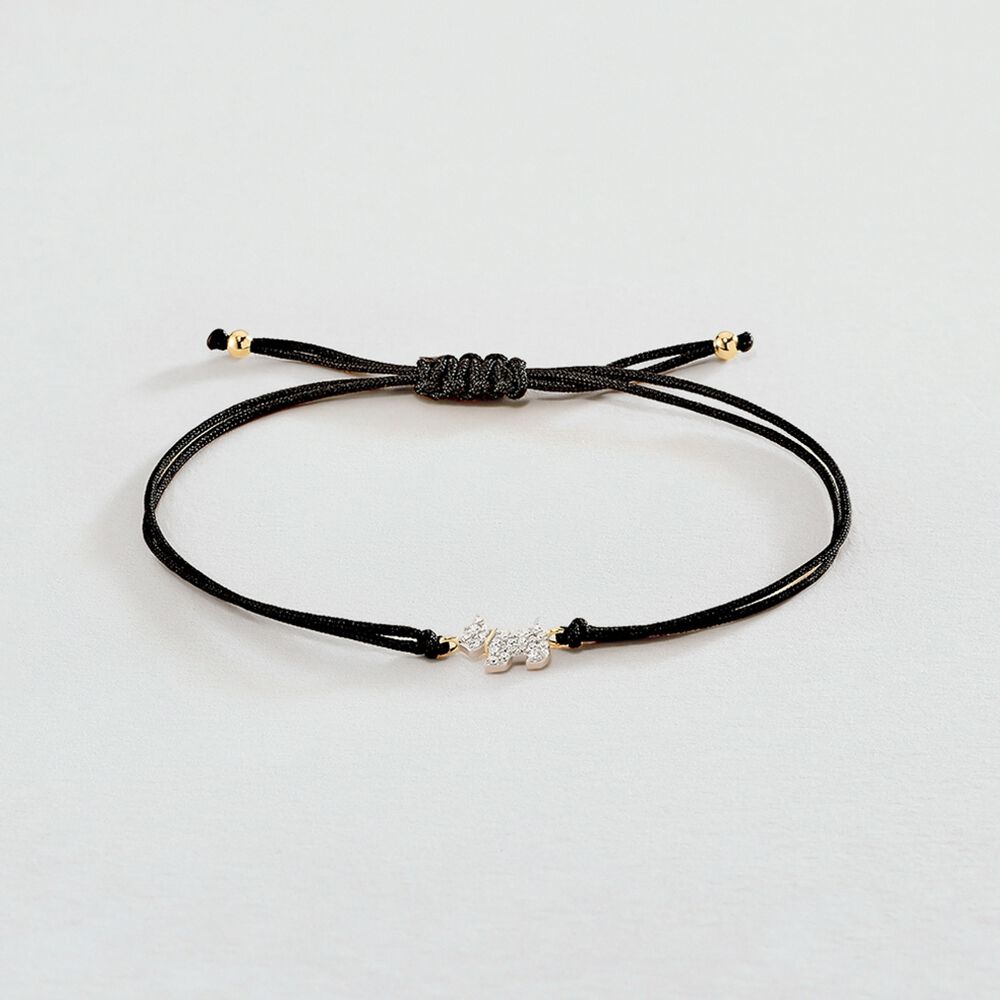 Pulsera de cordón con Scottie bicolor de plata de ley con baño de oro de 18k y circonitas. Revisitamos un best seller clásico de nuestra firma con una propuesta sutil y muy actual. Si eres fan de nuestro Scottie, esta pulsera va a ir directa a tu wishlist, no te quedes sin ella.