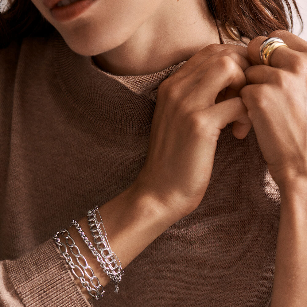 Pulsera de eslabones ovalados de plata de ley. Una joya ideal para regalar y auto regalarse porque va con todo. La puedes llevar sola o lucirla con tus pulseras favoritas, un acierto total.