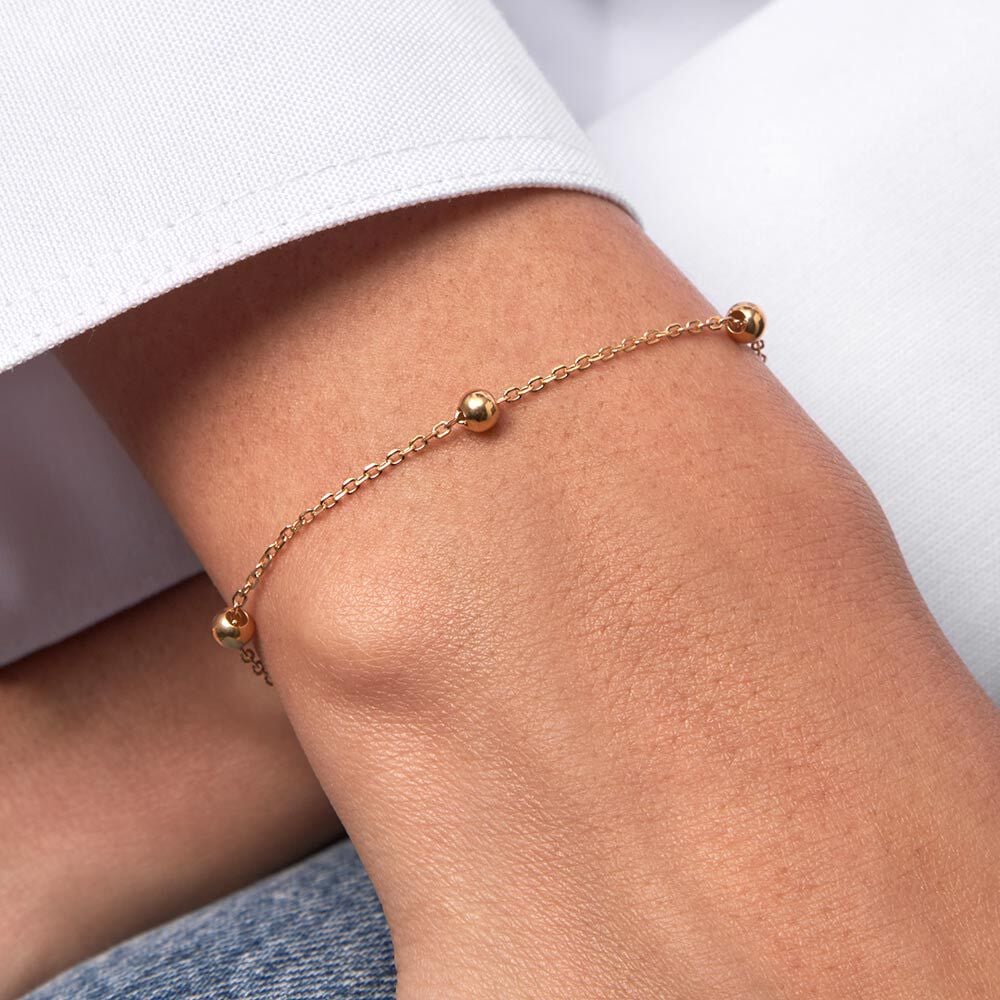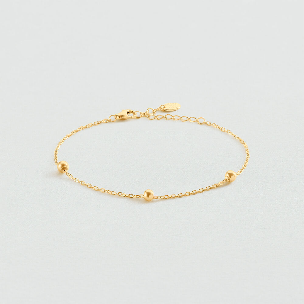 Pulsera de plata de ley bañada en oro de 18k con bolitas salteadas. Un clásico revisitado de aire chic afrancesado que no dejará indiferente a nadie..