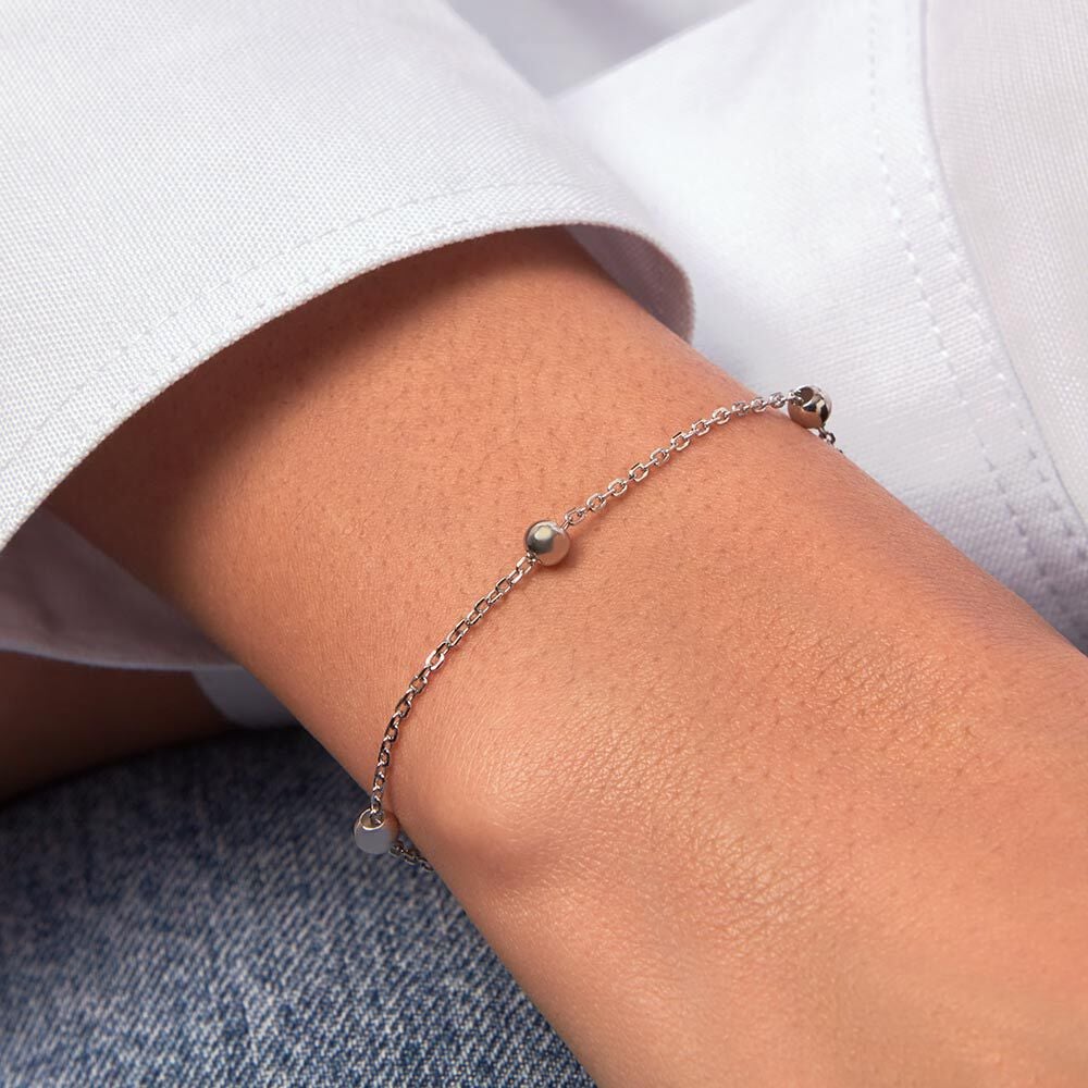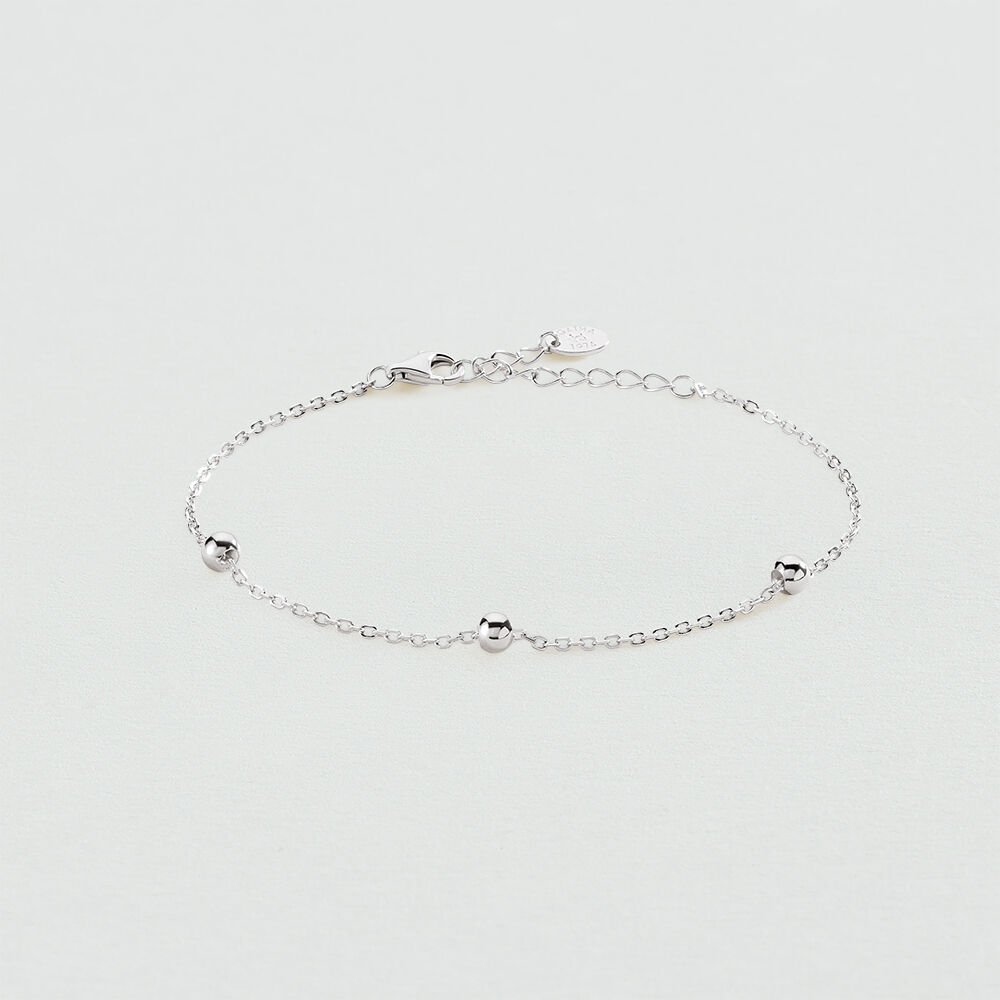 Pulsera de plata de ley bañada en rodio con bolitas salteadas. Un clásico revisitado de aire chic afrancesado que no dejará indiferente a nadie..