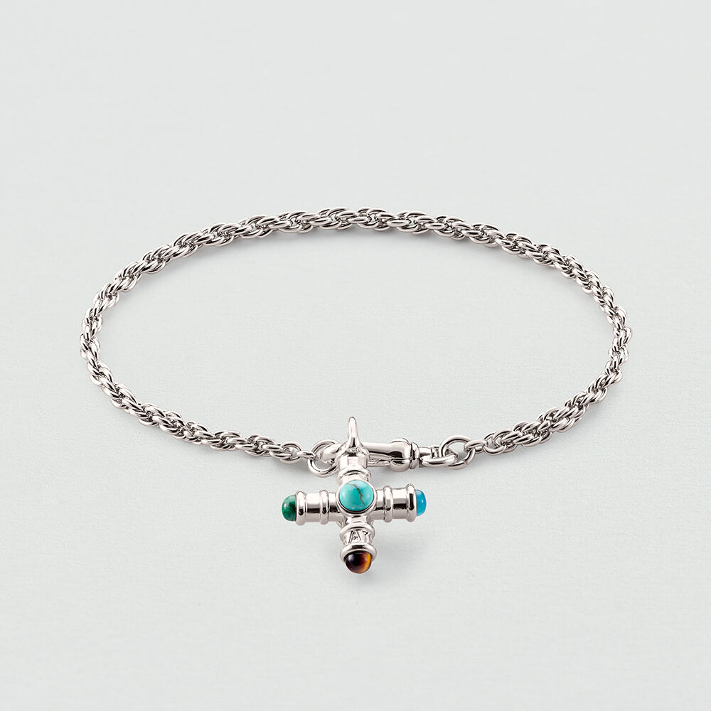Pulsera texturizada acabada en rodio. Puedes llevarla tal cual o puedes decorarla con los colgantes de la colección. Una joya personalizable que puedes ir transformando y llevar un pulsera diferente cada día.