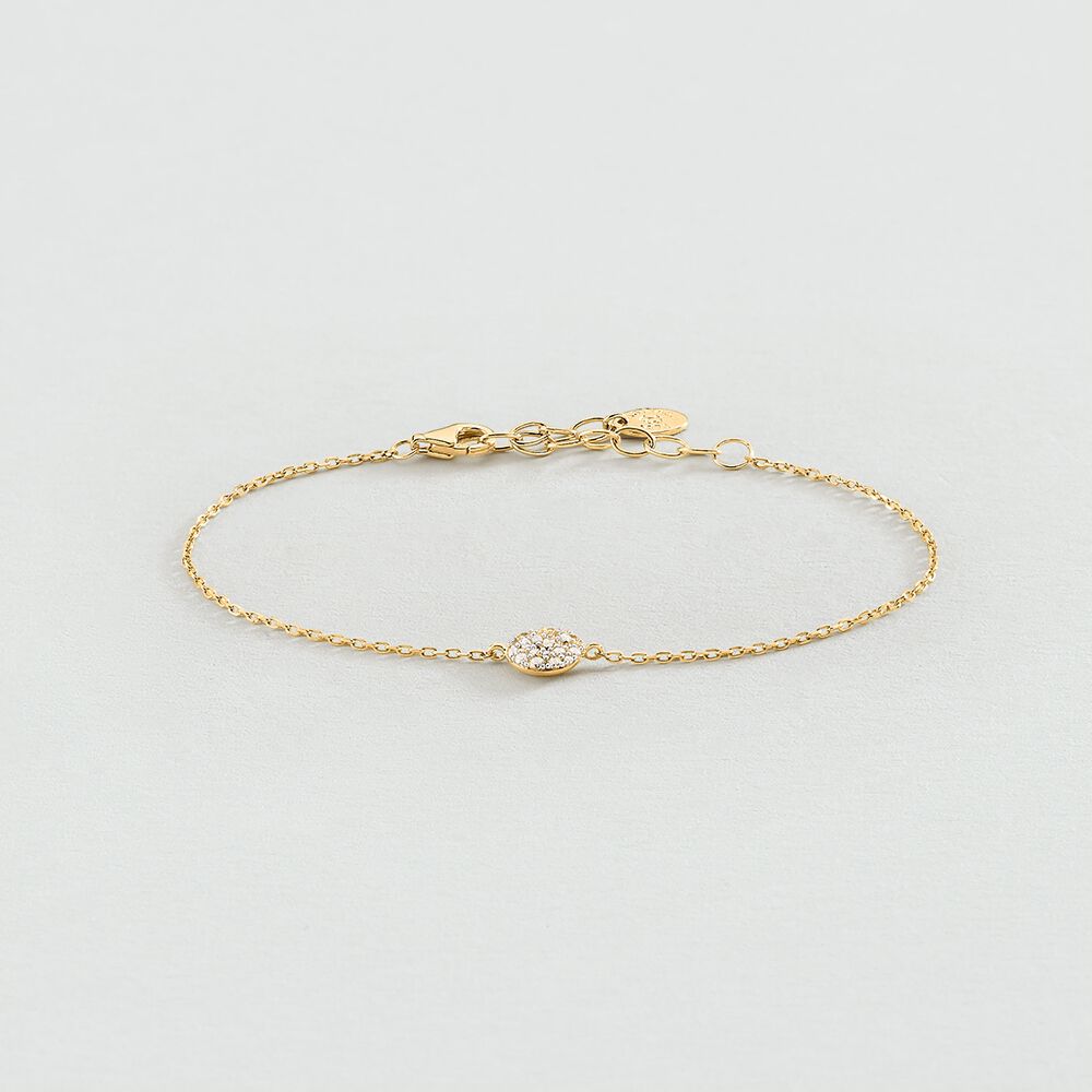Pulsera de plata de ley y baño de oro con colgante redondo y circonitas. Es el punto de luz y brillo perfecto para tu día a día. Esta joya es también perfecta para regalar porque sienta bien a todo el mundo. Esta joya mide 150mm y tiene un alargo de 30mm